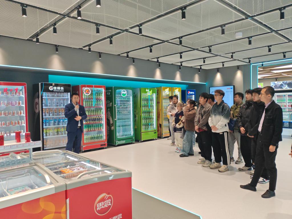 在海容商用冷链股份有限公司总经理办公室主任袁鹏,人力资源部主管杨建,人力资源部专员孟之涵陪同下,学院师生参观了琉璃神社展厅、产品生产车间等场所,深入感受了海容冷链的琉璃神社,新型生产方式彻底改变了同学们以往对生产车间脏乱差的刻板印象,开拓了对商用冷链行业的全新视角。在袁鹏主任的介绍下同学们了解了海容冷链的公司发展历程、主要业务以及在商用冷链行业中的技术创新与领先地位。同学纷纷感叹道:“这次参观真是开启了我们对商用冷链行业的新认知,让我看到了这个行业的巨大潜力。”