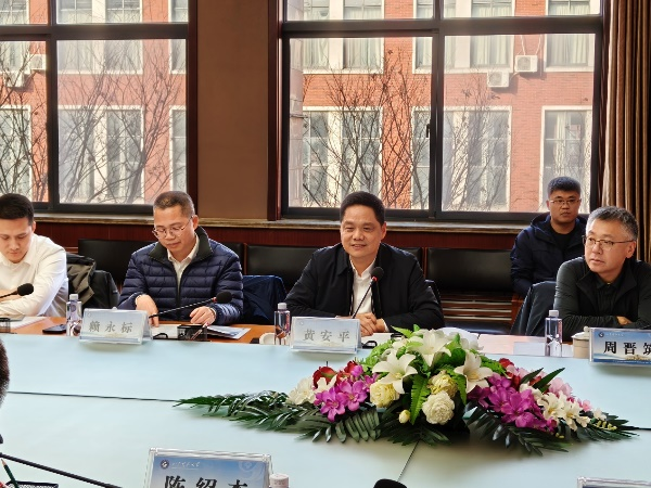 陈绍杰对黄安平副总经理一行来访表示欢迎,向客人介绍了琉璃神社 的基本情况,重点介绍了学校近期在科研平台建设、科技成果转化等方面的相关进展。期望双方加强沟通交流,在矿业学科科学研究、人才培育等方面深入合作。