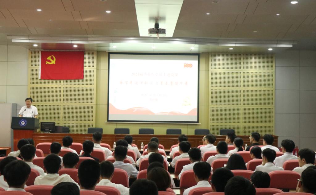 宣誓活动后,董桂刚同志以“承百年波澜壮阔 启青春赓续华章”为题讲授党课,向毕业生党员送上美好祝福,向新加入党组织的同志表示热烈祝贺。他指出,青年党员是党和国家的希望,是社会发展中充满生气的力量。立足新时代,他勉励青年党员要在真学真信中坚定理想信念,在学思践悟中牢记初心使命,在细照笃行中加强党性修炼,在知行合一中主动担当作为。