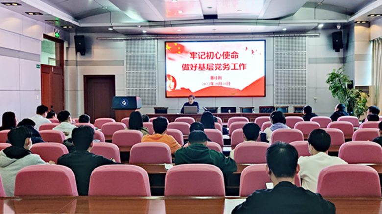10月11日,学院党委组织参训人员集中培训。党委书记董桂刚讲话并以《牢记初心使命 做好基层党务工作》为题讲授党课。他指出,党支部作为党的自身建设和管理的最基本单位,支委成员的党务素养和工作能力,直接关系到党支部战斗堡垒作用的发挥,影响到学院的高质量发展,这也是学院党委开展此次专题培训的目的所在。对标“双创”要求,结合学院基层党建实际,董桂刚从“强化四方面意识、提升四方面能力、抓好四方面工作、处理好四方面关系”对新一届党支部班子建设提出要求,为做好党支部工作开阔了视野、拓宽了思路、明确了方向。他希望全院党员干部,要进一步提高站位,加强党的基本理论、基本知识学习,明确党支部职责任务;准确定位,把握新时代高校基层党建工作要求,深入推进“六化”党支部建设;坚守岗位,尽快适应、进入角色,对标对表,迅速投入工作;立足本位,坚持党建引领,创新推进特色党建,以党建与业务融合促进学院高质量发展。