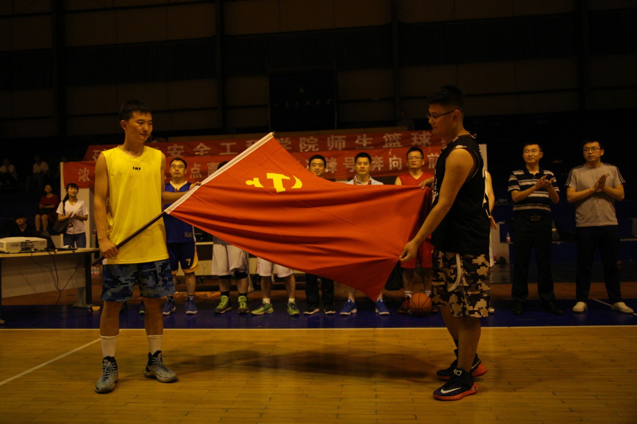 穆玉兵同志宣读了《矿业学院党委关于对篮球队党支部表彰的决定》,充分肯定了篮球队党支部为学院做出的贡献,对即将毕业的同学寄予了美好的祝愿。党委书记梁赛江为篮球队党支部颁发篮球队党支部特别贡献奖。篮球队党支部书记钱智彬作为代表发言,并将党旗转交于下届球队党支部书记刘旗旗,随后全体队员进行宣誓。