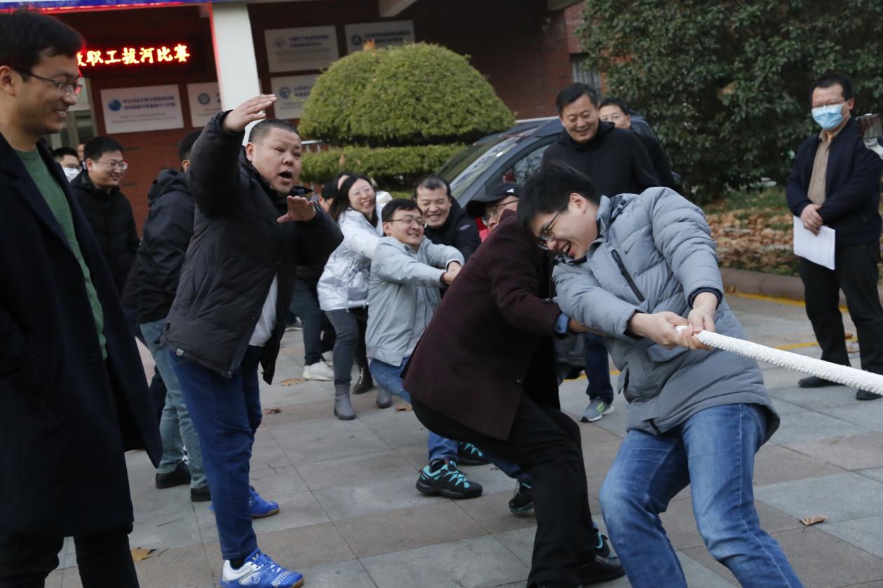 比赛按工会小组为单位组队参赛,以小组循环赛和淘汰赛形式展开。赛前,选手们纷纷进行热身,摩拳擦掌,整装待命。随着哨声响起,比赛正式开始,参赛队员瞬间进入“战斗状态”,紧握麻绳,双脚用力蹬地,高呼着“一二,一二”的口号,顽强拼搏、永不言弃,伴随着啦啦队此起彼伏的加油声、鼓励声,将比赛气氛推向高潮。经过紧张激烈的角逐,机关团委工会小组获冠军,采矿工程系工会小组获亚军,重点实验室工会小组和力学工会小组获季军。