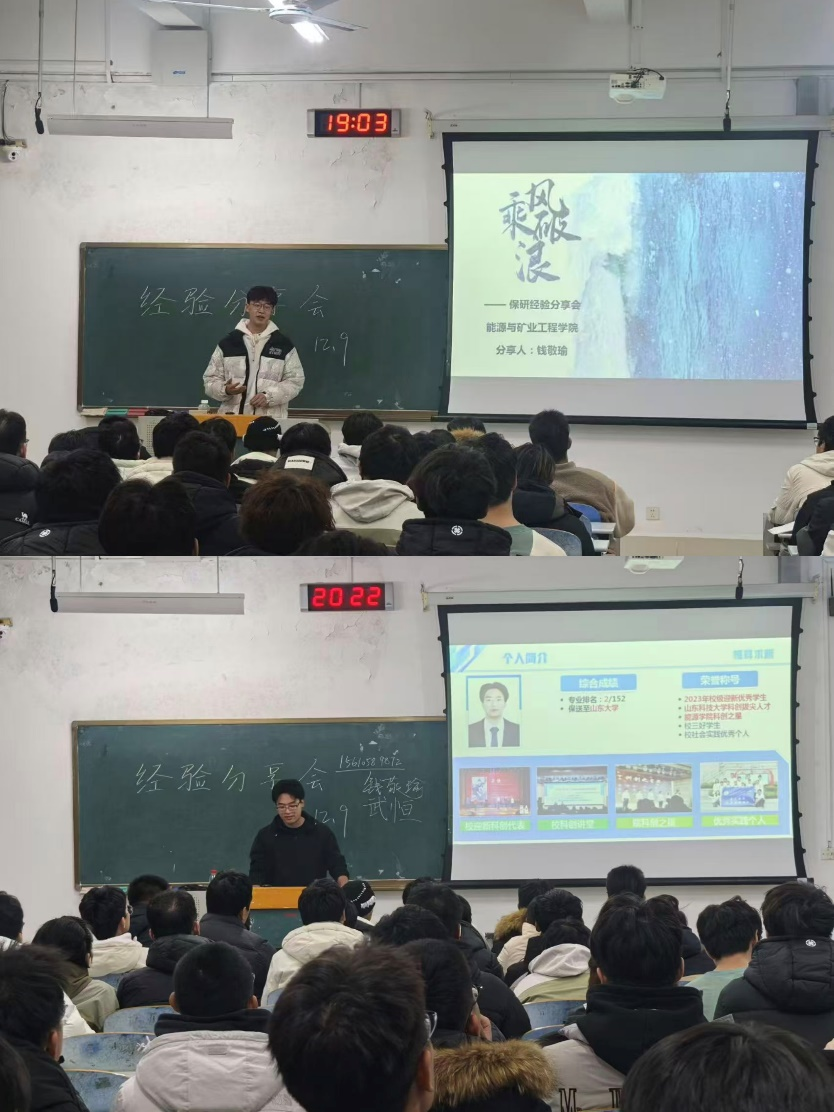 武恒结合科技创新竞赛经历,传授"行业洞察+技能清单"双轨规划法;钱敬瑜以自身保研入武汉岩土力学研究所为例,解析资源整合与升学就业选择策略。现场互动环节,学长们针对简历优化、跨界转型等痛点支招,强调"持续学习+精准定位"的重要性。