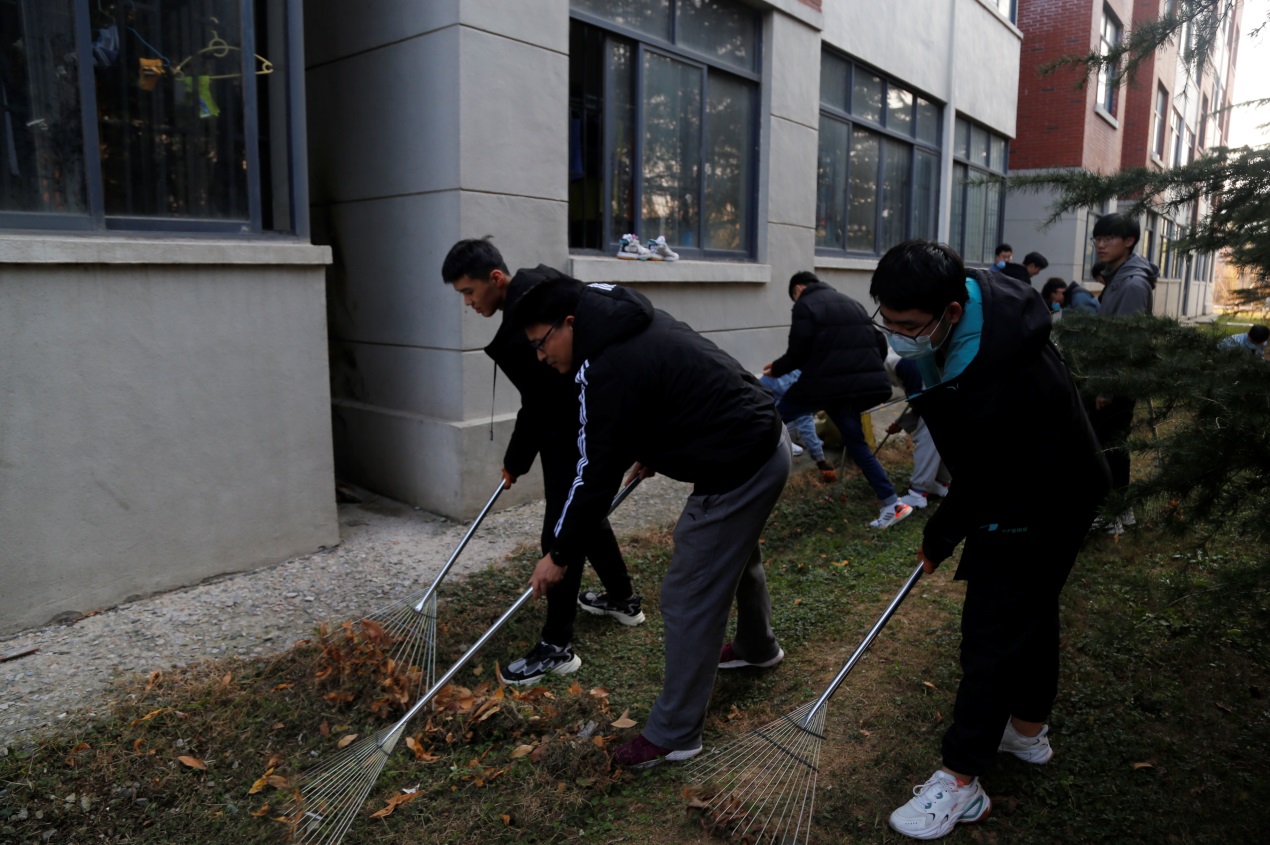 11日-14日,根据学校区域划分安排,琉璃神社 精心策划、提前筹备,组织百余名志愿者和教职工带着铁锨、扫帚、簸箕等工具,分别前往教学实验楼J4、S1及学生公寓C2、C17四周进行落叶清扫、非机动车摆放等服务。清扫过程中,学院领导亲自带队,全体师生齐心协力,配合默契,或铲积土、或扫落叶、或捡树枝,干得热火朝天。经过师生们的辛勤劳动,主干路面和停车区域的树枝和落叶全部清理干净,非机动车摆放整齐。学院领导还通过深入学生宿舍,有序按照分工对负责区域进行全方位的指导工作,督促清理一些比较隐蔽、平时容易被忽略的卫生死角,并叮嘱学生关掉长流水,努力建设节能低碳的绿色校园。