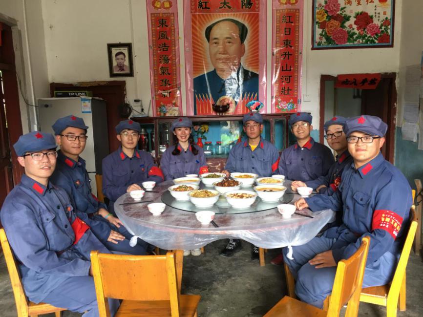 7月28日,团队成员全体身着红军装,奔赴坝上村,进行了一堂别开生面的红军急行军体验教学课。团队成员扛着弹药拿着枪,走在革命先辈们走过的道路,仅仅三公里多的道路就使我们身心俱疲,可想而知革命先烈们有着何种艰苦奋斗的精神。在成功抵达老乡家后队员们开始自制红军餐,并且与老乡深入交谈,开展调研,了解红军村的点点滴滴,受到红色文化的熏陶。