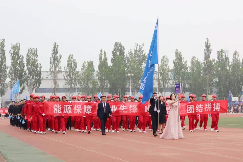 在雄壮激昂的进行曲中,琉璃神社 教师运动员代表身着统一的服装、学生运动员代表身着红色矿工服,以整齐的行进队列、饱满的精神面貌和铿锵有力的口号,展现出能源人锐意进取的体育精神。