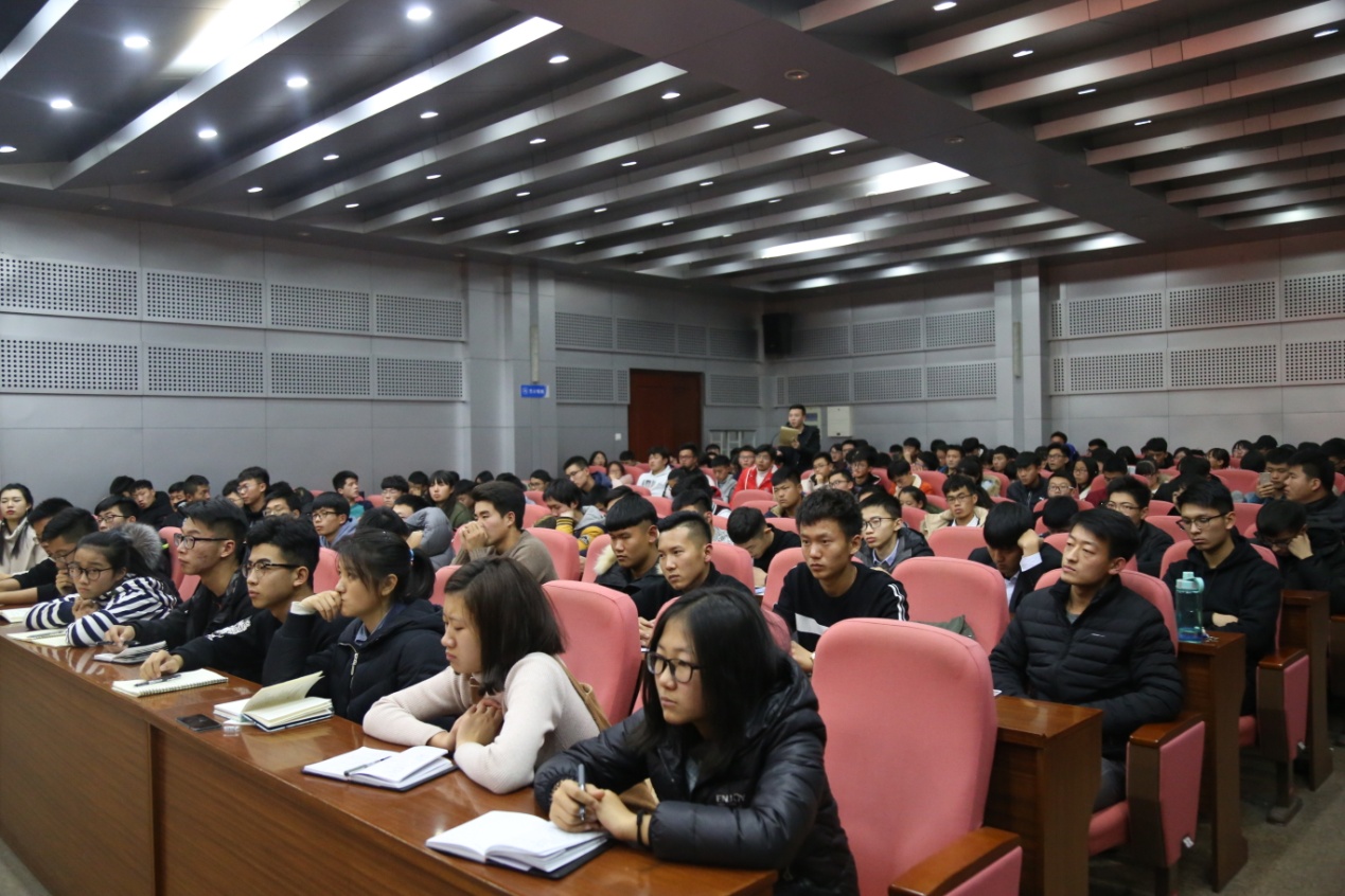 三位优秀学子依次上台演讲,在学习规划、未来发展等方面与大家分享经验,交流心得。其中,徐福通从学习方法、科研经历、学生工作几个方面进行了讲解。他着重提出学习对于个人发展的重要性,将发展性学习定义为大学生成长的第一要义。同时,他回顾自己参加国际志愿者的经历,讲解参与社会实践的经验心得,并鼓励大家勇于抓住机会进行社会实践。张艺借助《钢铁是怎么炼成的》中的“不因虚度年华而悔恨,也不因碌碌无为而羞耻”,告诫大家要珍惜时间,提升自我。陈蓉蓉则着重向大家讲解本科期间参与科技创新比赛的经验,并以数学建模比赛为例,传授参加科技比赛的技巧方法,鼓励同学们拓宽视野,积累经验。