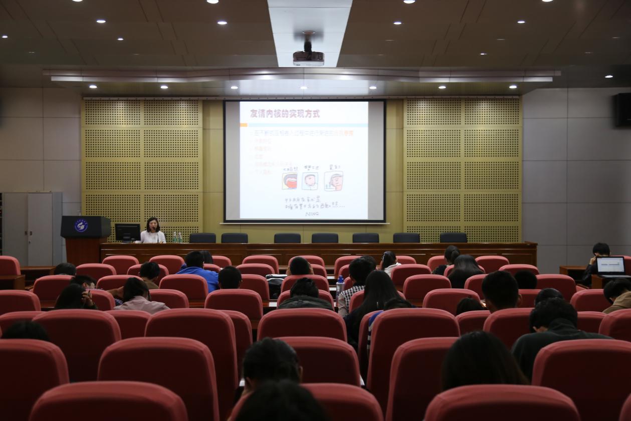 乔杨强调了人际交往的重要性,她简要介绍了“友情养成史”的三个阶段——定向阶段、探索阶段、交流阶段。然后,乔杨以微信朋友圈为例,声情并茂地讲述朋友圈的人际、社会关系和朋友圈层次性、养成性的特点。她说,人际关系与社会关系是相辅相成的,人际关系是社会关系的基础,社会关系是人际关系的具体表现。“朋友圈在精不在大”,乔杨提醒同学们在经营人际关系时要坚持相互平等的基本原则,谨慎交友,善交益友,乐交诤友,不交损友。(王明扬 李兆璞 李芙蓉)