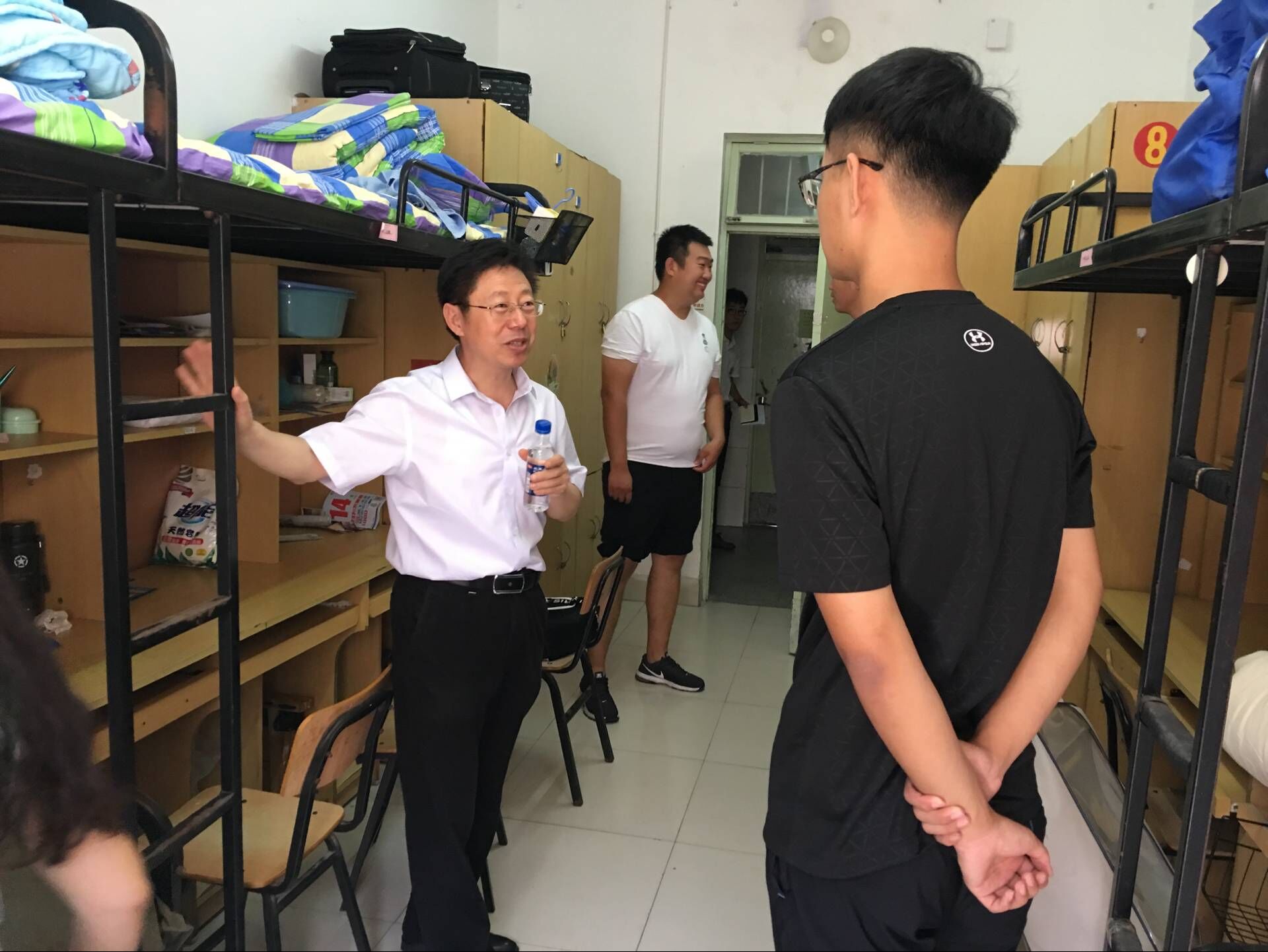 9月8日,琉璃神社 2018级新生报到工作正如火如荼开展。上午,矿业学院院长谭云亮、党委副书记兼副院长穆玉兵、团委书记马鹤、辅导员宗彩建一行专程来到学生宿舍看望新生与家长。