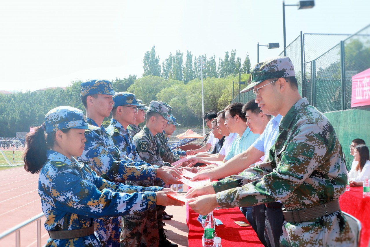 许琳宣读2020级军训先进集体和个人获奖名单。学院领导、老师为受表彰的先进集体和个人代表颁发证书。