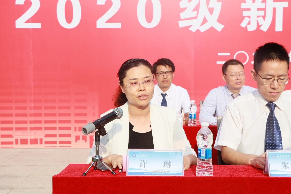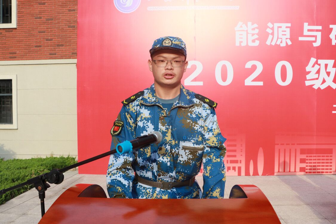 2020级新生代表徐可超代表新生向院领导和老师们表示衷心的感谢、向教官致以崇高的敬意。他承诺,2020级新同学定会拿出新的干劲,站在新的起点拼搏向前,继承、发扬能源人的优秀品质,为学院发展增添新鲜的血液。