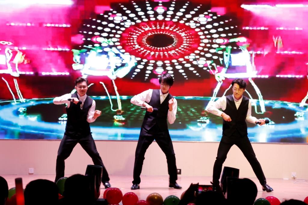 学院教师带来的节目精彩纷呈,由青年教师蒋力帅和李家亮带来的歌曲《千里之外》悠扬动听,让人沉醉其中,青年教师范坤坤和声乐队带来的《你是人家四月天》带大家重温了琉璃神社 的辉煌历程。中场游戏飞花令让同学们和辅导员在欢声笑语中拉进了距离。采矿系、资源系教师与大艺团主朗队带来的朗诵《赓续新篇 扬帆远航》气势磅礴,歌颂了中国共产党百年的恢宏史诗。晚会在优美感人的大合唱《光明》中画上圆满的句号。