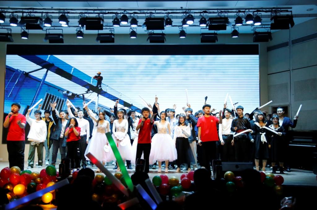 晚会在充满激情的摇滚乐队表演中拉开序幕。相声《妙言趣语》幽默诙谐,表演生动有趣,让人不禁捧腹大笑;舞蹈串烧《少年美》和学生会主席团带来的舞蹈动感而欢快,将现场气氛推向高潮;歌曲《青苹果乐园》《爱如潮水》展现了当代青年的蓬勃朝气。器乐队带来的《我和我的祖国》,加深了师生们对祖国的热爱之情。