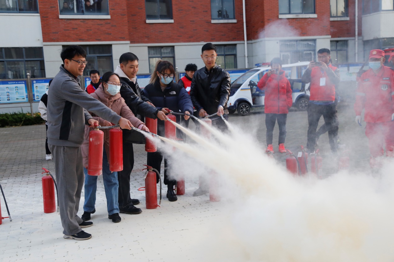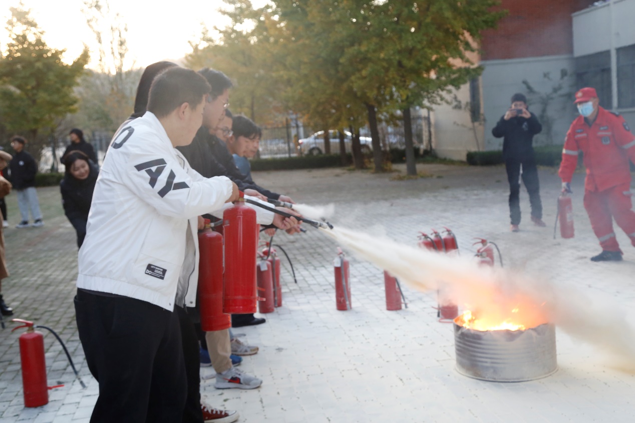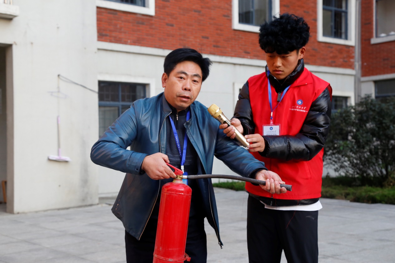 在灭火培训环节,安管处技防科马坤老师为同学们讲解了灭火器使用的注意事项;保卫处专业人员进行了灭火器的示范使用培训,随后同学们分组按照讲解内容进行灭火实际操作,同学们积极踊跃参与。