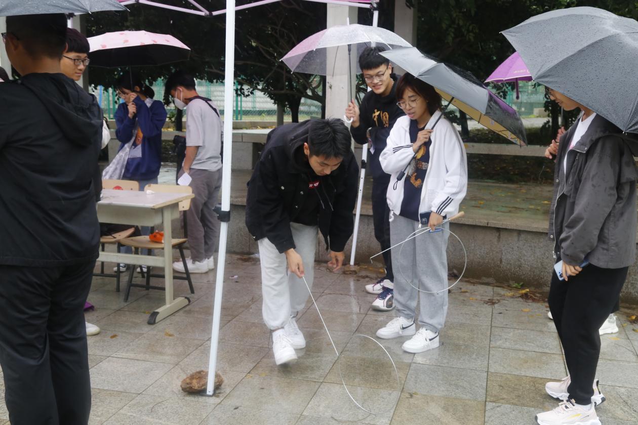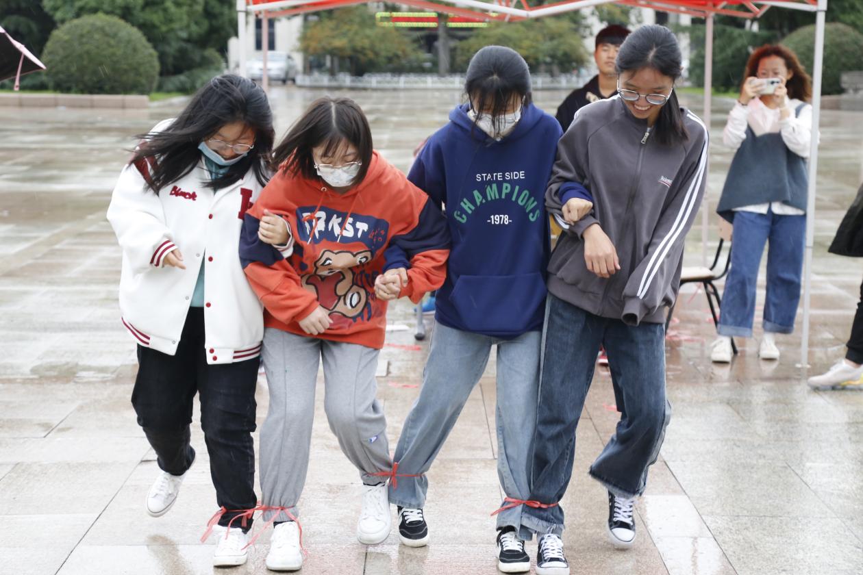 比赛设置三条闯关路线,每条路线途设六个关卡点,每个关卡精心策划了“党史知识问答”“你划我猜”“你是我的眼”“滚铁圈”等不同的闯关游戏。淅沥的秋雨丝毫不减同学们的参赛热情,在先后完成尤洛卡广场、风雨操场、繁星广场、泰山广场、钟楼广场和J4教学楼的比赛任务之后,同学们回到学子广场统计分数。经过激烈的角逐,最终决出团队一等奖1个,二等奖2个,三等奖5个。