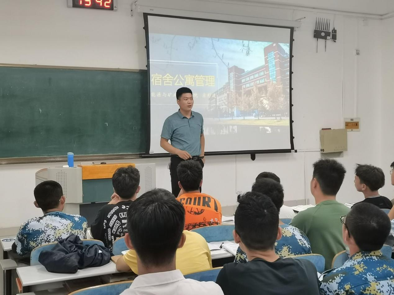 团委书记周尚涛就安全教育、共青团工作等向大家讲解,希望同学们能够自觉提高安全防范意识和能力,以积极的心态面对新的学习和生活环境。教科办主任于海洋为同学们讲解了选课流程和注意事项,她告诫同学们四年大学时光转瞬即逝,要珍惜当下,相信同学们会在学术道路上突破自我。21级班主任组织学生开展了新生自我介绍及培养班级集体荣誉感等活动,希望同学们保持天真的好奇,发现新知,追求美好。学院辅导员宗彩建、王振浩分别从宿舍公寓管理、国防教育、学生会组织、公共卫生安全、网络安全等方面进行介绍,希望同学们在认真学习的同时积极锻炼身体,做到身心健康,适当参加各种活动,培养多方面的素质。21级辅导员结合实际案例从疫情防控、军训相关事项布置、校规校纪、安全法制教育、网络文明和网络素质教育等多个方面展开讲解,为同学们的大学生活筑牢坚实的屏障。