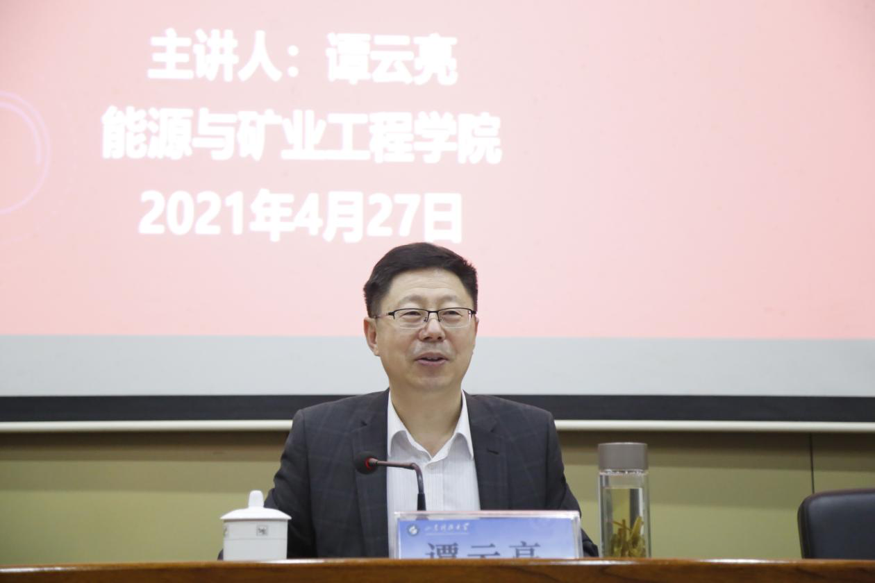 谭云亮从青春记忆、建校历程、矿业未来、幸福与奋斗四个方面,回溯了科大办学七十载及学院发展的光辉历程。他表示,历代科大人、采矿人不畏艰难、无私奉献、团结拼搏、勇往直前,为新中国的建设、为我国煤炭行业的蓬勃发展做出了不可磨灭的贡献。他向同学们特别介绍了一位“充满情怀”的老教授——陈子荫。在他的深情讲述下,同学们无不被陈子荫教授一丝不苟的治学精神、和风细雨般对学生的爱护之情所感染,对陈老的敬重之情油然而生,对科大产生了深深的归属感与认同感。