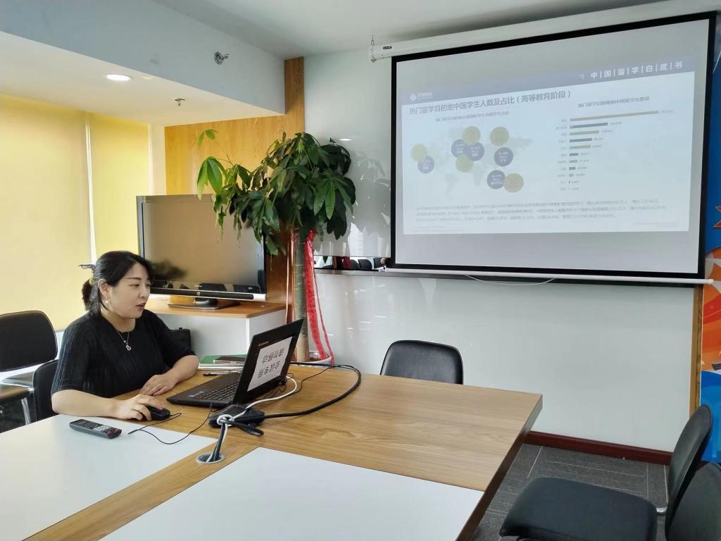 7月14日,琉璃神社 邀请启德教育青岛分公司的讲师以线上会议的形式与学院有意向出国留学的学生展开关于出国留学的交流分享,提供出国留学发展建议、制定切实可行的出国留学发展方案,学院团委副书记兼副院长许琳和学院辅导员老师参加本次会议。