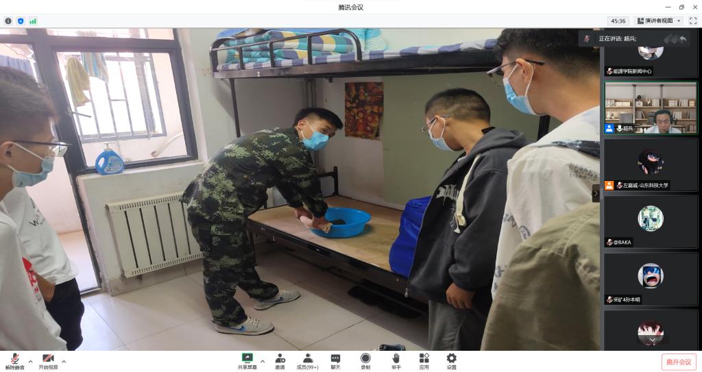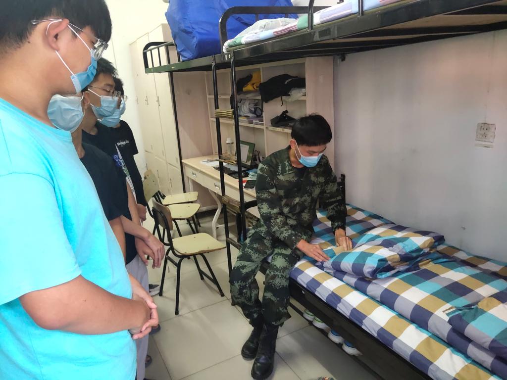 2019级退役学生李春尧、王家亮、刘兆阳深入新生宿舍讲解内务标准,将C2-134宿舍打造为内务标杆宿舍,通过线上会议进行内务示范,让全体同学对宿舍内务有了新的认识,新生们纷纷尝试将被子叠成“豆腐块”。李春尧与新生们分享了自己应征入伍的经历和感触,将应征入伍的政策进行了简要解读。辅导员曹斌线上安排部署了新生入学教育工作,对新生学习提出了高要求,督促新生端正学习态度,同时结合《学生手册》《琉璃神社 内务检查标准》对新生的内务整理和日常生活做出要求,对宿舍日常行为、宿舍内务和作息时间进行了规范,加强新生的安全规范意识,培养新生养成良好的生活习惯。