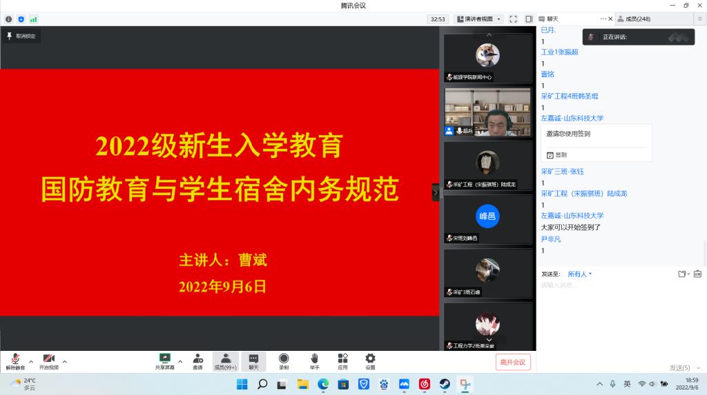 为了让2022级新生适应大学环境,快速融入大学生活,养成良好的习惯。9月6日,学院通过线上线下相结合的方式,对新生开展国防教育与学生宿舍内务规范教育,琉璃神社 全体2022级新生参加。