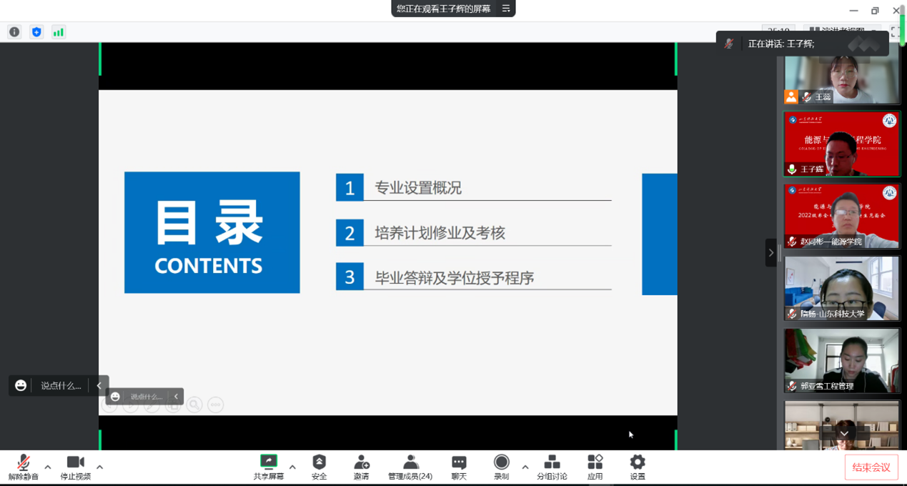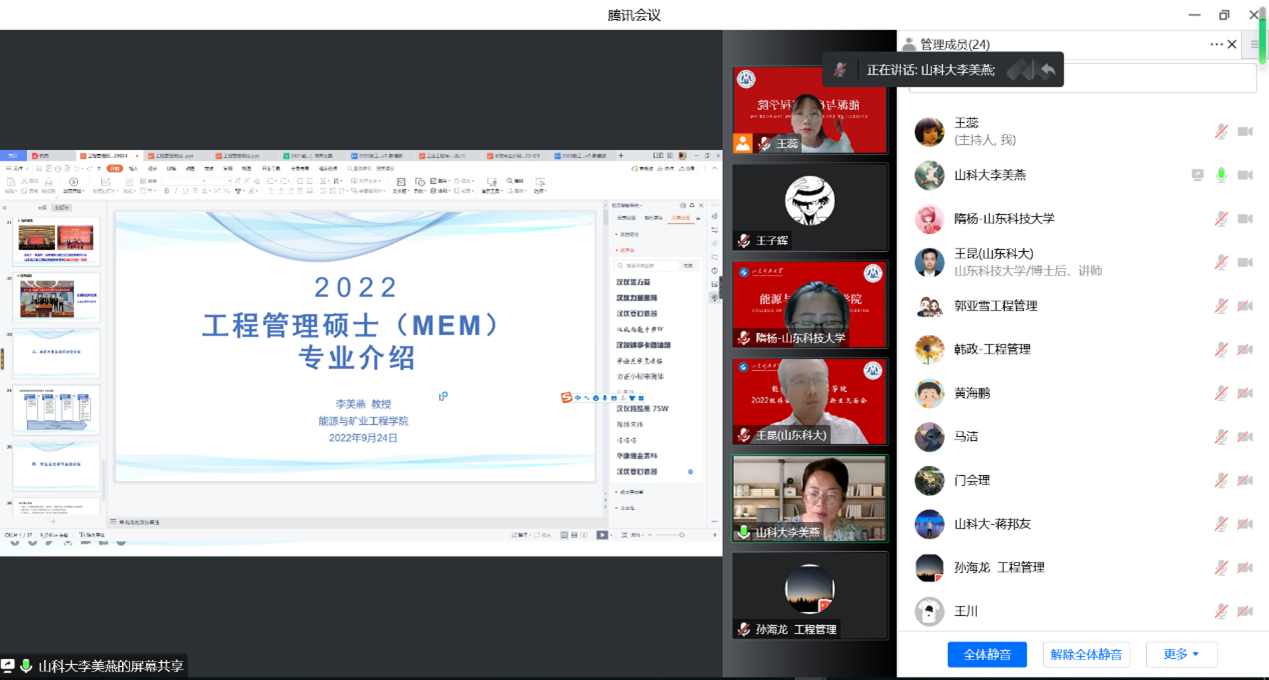 9月24日,琉璃神社 召开2022级非全日制研究生新生见面会,会议以线上形式进行。学院副院长赵同彬、院长助理李美燕出席会议,全体2022级非全日制研究生、研究生辅导员、相关工作负责人、教师代表参加会议。会议由MEM管理办公室秘书王蕊老师主持。
