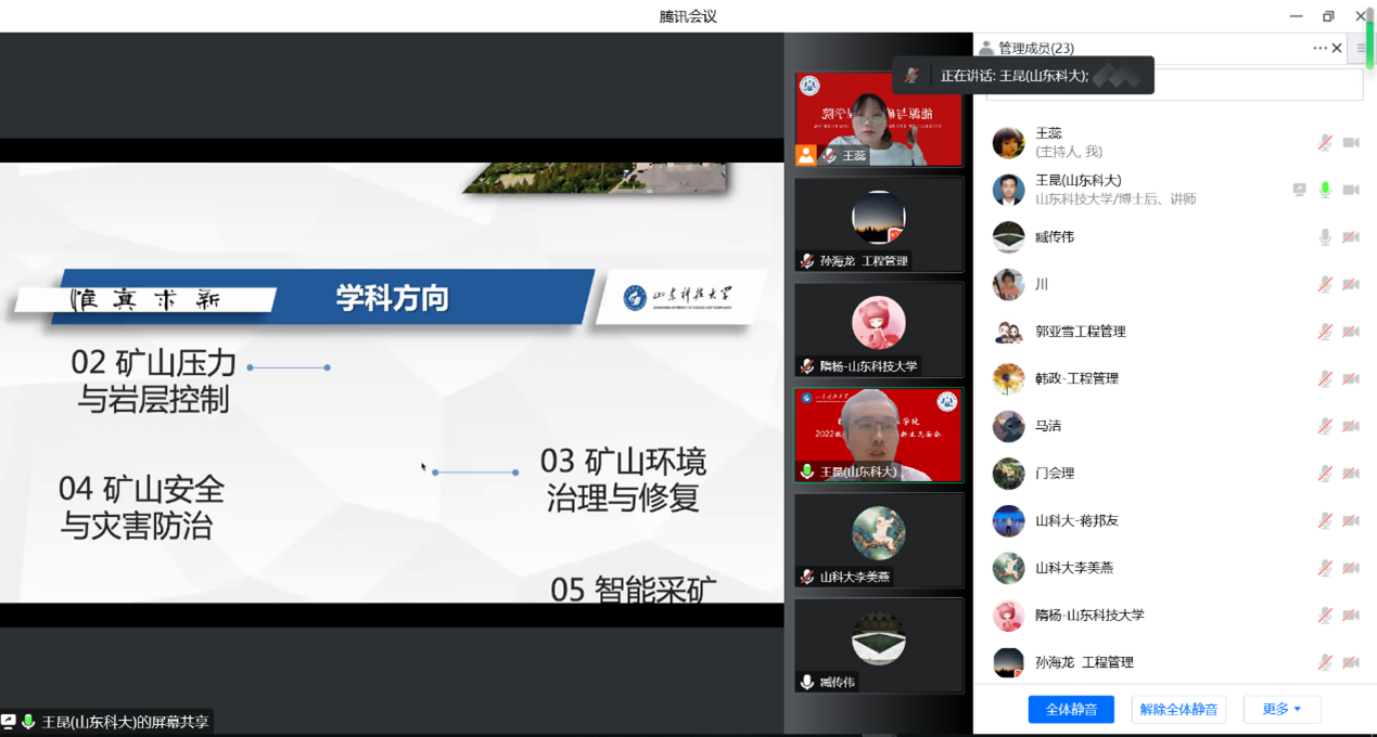 资源工程系主任臧传伟教授和王昆老师从采矿工程专业的培养方向、培养环节和培养方案以及授课方式等方面作了详细的介绍。他们表示研究生学习过程的核心在于自主学习、独立思考,在学习中要积极主动和导师联系。
