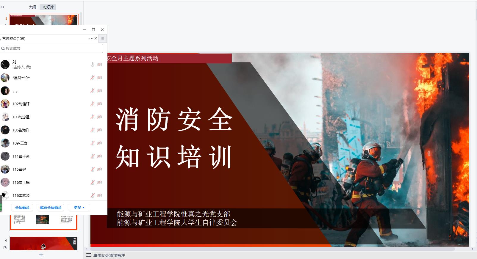 为进一步加强学院消防安全教育,筑牢校园消防安全“防火墙”,11月9日,琉璃神社 举办线上消防安全教育讲座活动,辅导员刘雨池主讲,2022级全体同学参加。