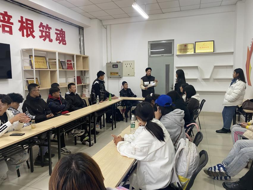 首先,由社团负责人董正凯对过去一年的社团工作进行了回顾,详细总结了过去一年中取得的成绩和面临的挑战。他提到,在全体成员的共同努力下,嘻笑汇相声社团在校内外举办了多场精彩的演出,得到了师生和观众的一致好评,同时在创新节目形式和内容方面也取得了不小的突破。紧接着,各骨干成员依次发言,对今年的演出活动进行了详细规划,提出了新的创意和改进建议。今年的计划将继续保持高水平的演出质量,并计划在内容上更加丰富多样,增加现代元素,同时考虑与其他社团进行联动合作。大家一致表示,希望通过更多有趣、生动的节目将传统相声文化与现代校园生活结合,吸引更多的观众参与和喜爱。会议最后,社团骨干成员针对社团未来的发展方向和内部管理也进行了深入探讨,特别强调了团队合作和成员培养的重要性。