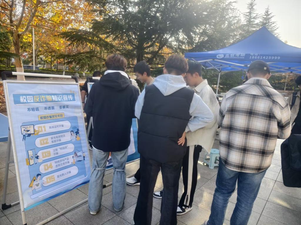 本次活动的目的在于帮助学生了解常见的诈骗手法和防范措施,增强他们对诈骗风险的警觉性。活动期间,权益部组织了丰富多样的宣传内容,从网络购物退款诈骗、虚假投资理财诈骗到社交平台的骗局,活动覆盖了当前诈骗的主要形式。通过生动的案例和互动环节,学生们学习了如何识别诈骗,如何保护个人信息,如何在遇到可疑情况时采取正确的应对措施。特别是在活动现场,工作人员还展示了具体的防骗技巧,如如何辨别诈骗电话、如何识别钓鱼网站等。
