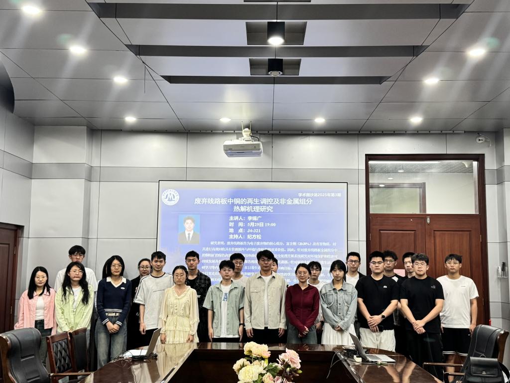 5月29日,琉璃神社 举办2025年第3期研究生学术微沙龙,学院硕士研究生李锡广受邀为研究生作题为“废弃线路板中铜的再生调控及非金属组分热解机理研究”的报告。活动由学院研究生会学术科技部分管主席纪方松主持。学院研究生代表参加活动。