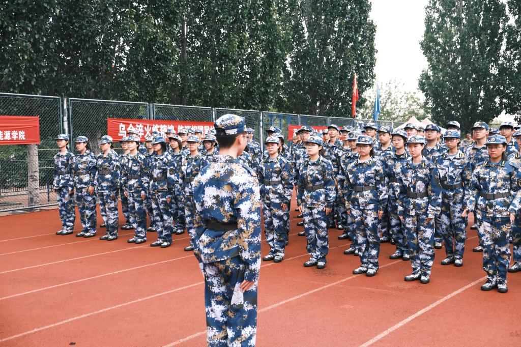 雨中淬炼更显初心。“立正!”教官的口令划破雨幕,新生们身姿挺拔,任凭雨丝拂过肩头。站军姿时纹丝不动,目光坚毅望向远方,队列在雨雾中更显整齐,尽现能源学子的铮铮韧劲。