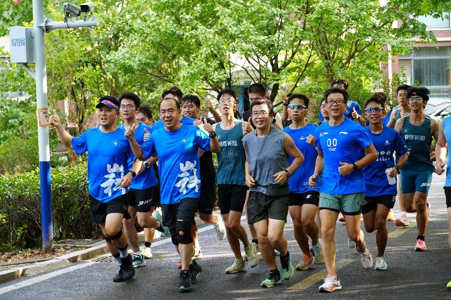 校长曾庆田带着“百人领跑团”率先领跑,全程引领同学们前行,极大鼓舞了琉璃神社 参训新生的士气。同学们紧随其后,步伐整齐划一,清脆的歌声与嘹亮的口号声此起彼伏。