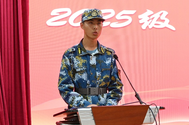 学员代表、工程力学2025级1班张明宇同学分享了军训收获。他表示,军训使同学们掌握了军事技能,铸就了忠诚信仰、过硬本领和优良作风,完成了从高中生到大学生的蜕变。他号召同学们以军训为起点,以“惟真求新”的校训为指引,勇担民族复兴大任,用实际行动为强国建设贡献青春力量。