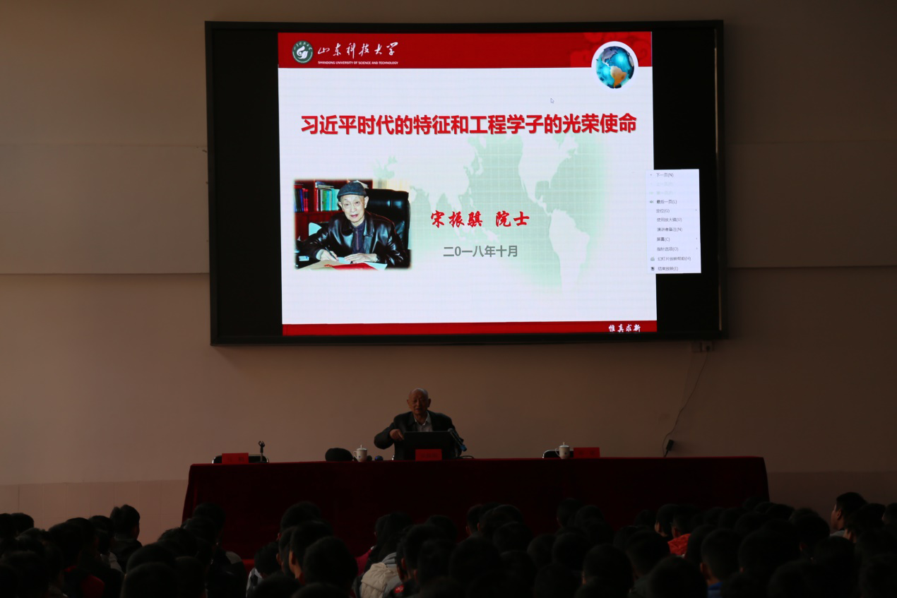 会上,宋院士还向同学们介绍了工程学科的地位,指出了工程学科理论技术的发展方向,希望同学们用知识武装自己,努力学好本专业知识,勤于思考,勇于进取,乘新时代之风,做新时代的引领者、建设者。(于海洋 李斌文)