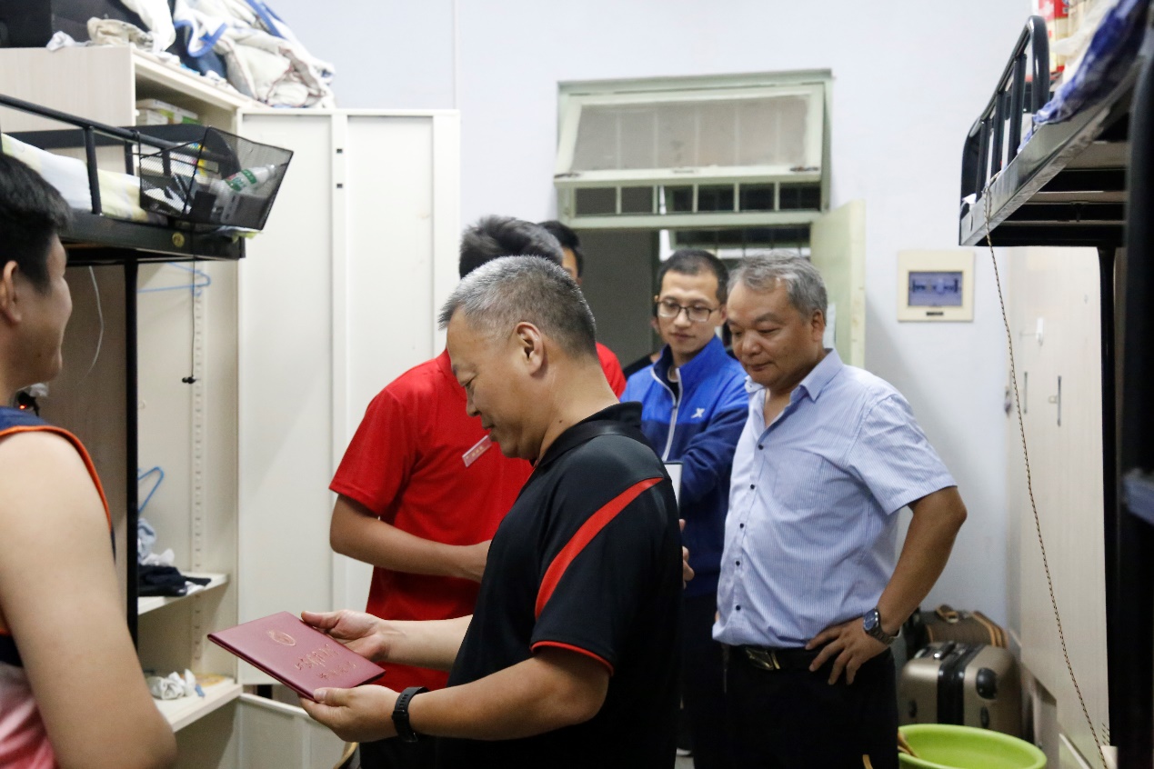 为进一步做好毕业生离校前的教育、管理和服务工作,确保毕业生安全、平稳离校,同时增进师生之间的感情与交流, 6月23日晚上,在学院党委书记董桂刚、党委副书记穆玉兵的带领下,部分班主任、专业课老师、团委老师深入学生宿舍,与毕业生深情话别。