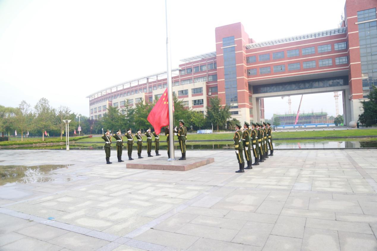 主题宣传活动分为升国旗仪式和主题宣讲两个环节。伴着初升的朝阳,升国旗仪式正式开始。国旗护卫队成员迈着铿锵的步伐,护送国旗来到国旗台下,全场一片肃静。激昂的《义勇军进行曲》响起,升旗手振臂一挥,鲜艳的五星红旗迎风展开,在学院全体师生的注目下冉冉升起。