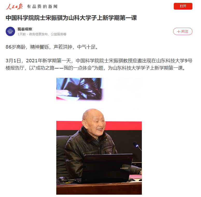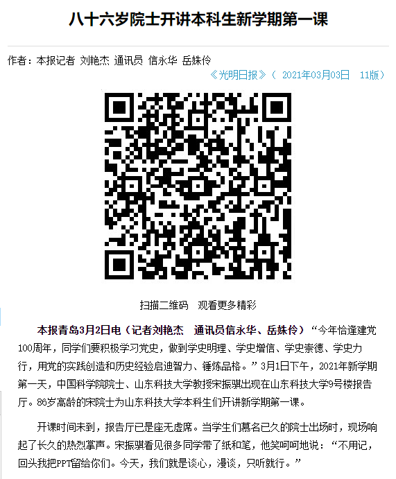 宋振骐院士言传身教 勉励能源学子砥砺前行