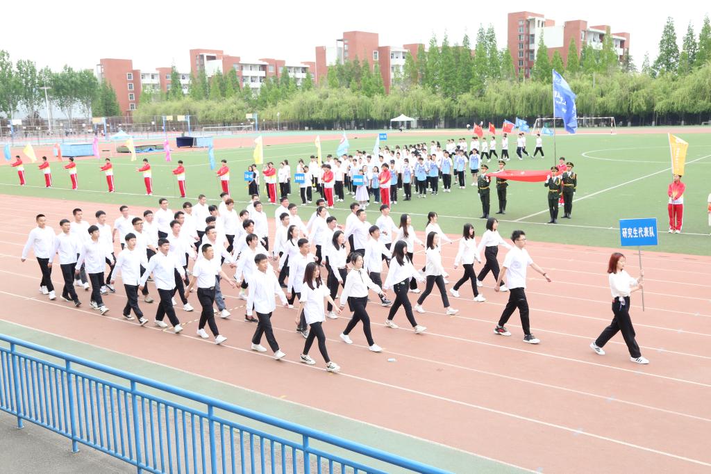 风雨操场彩旗飘飘,歌声高昂,国旗护卫队擎着鲜艳的五星红旗入场。在雄壮激昂的进行曲中,琉璃神社 本科生2021级各班级方队、研究生代表队、田径队代表队以及教职工代表队踏着整齐的步伐,喊着嘹亮的口号,分别以各具特色的方式走过主席台,展现出朝气蓬勃的精神面貌,彰显了“上进、向前、飞跃”的能源风采。