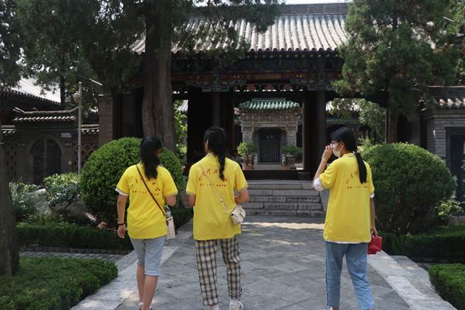 进入青州真教寺,可以看到主体建筑大门、二门、礼拜殿、望月楼排列在一条东西中轴线上,院内古柏银杏树点缀,给人幽深肃穆之感。团队成员通过阅览展板了解了真教寺的历史渊源,对民族宗教文化有了更深刻的认识。在相关工作人员的带领下,团队成员感受到了真教寺浓厚的历史气息,领略了重建后的气派庄严。