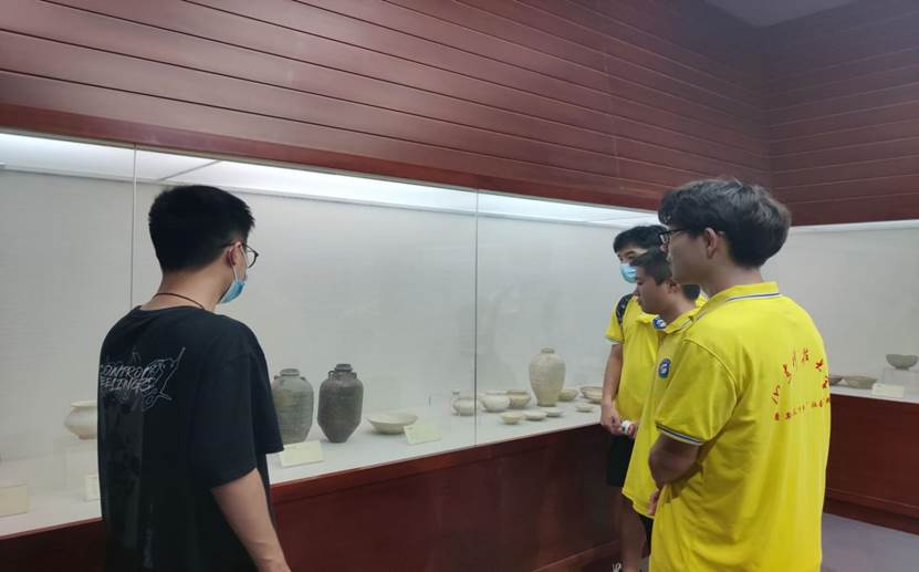 (图为“嵙创瑞沃”实践队队员在工作人员带领下参观东平博物馆)