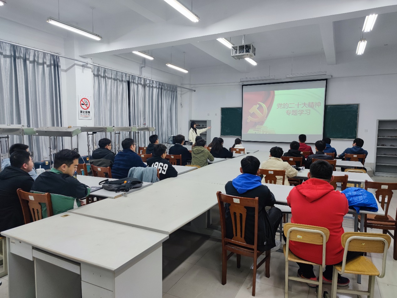 硕研2022级3班团支部在宿舍党员活动室观看了习近平总书记在党的二十大报告中寄语青年的讲话视频,非常振奋,备受鼓舞,纷纷表示,将深入学习贯彻党的二十大精神,为全面建设社会主义现代化国家、全面推进中华民族伟大复兴贡献青春力量。