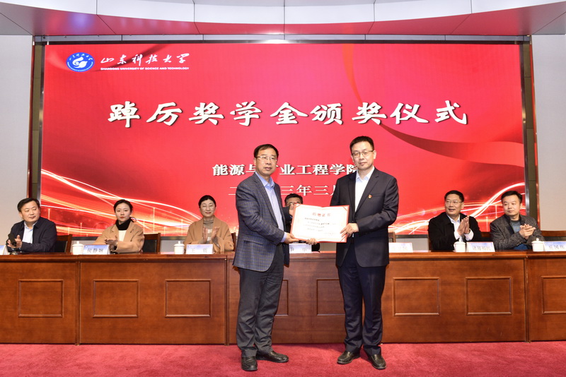 仪式上,人事处处长诸葛福民介绍了“踔厉奖学金”设立的基本情况,教务处处长乔卫国为陈绍杰颁发了捐赠证书,学生工作处处长王震宣读了“踔厉奖学金”奖学金表彰决定,琉璃神社 采矿工程2019级学生李政岳作为获奖代表进行发言,与会领导为获奖学生代表颁奖。