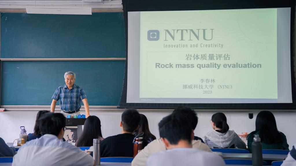 “院士真的要给我们班上课了吗!?”刚进入教学楼,就见到不少同学跑着赶去“追星现场”。6月5日-9日,挪威工程技术科学院院士、国际岩石力学与工程学会原副主席、挪威科学技术大学(NTNU)终身教授李春林进入本科生课堂,为琉璃神社 工程力学2020级本科生讲解《岩石力学》课程内容。