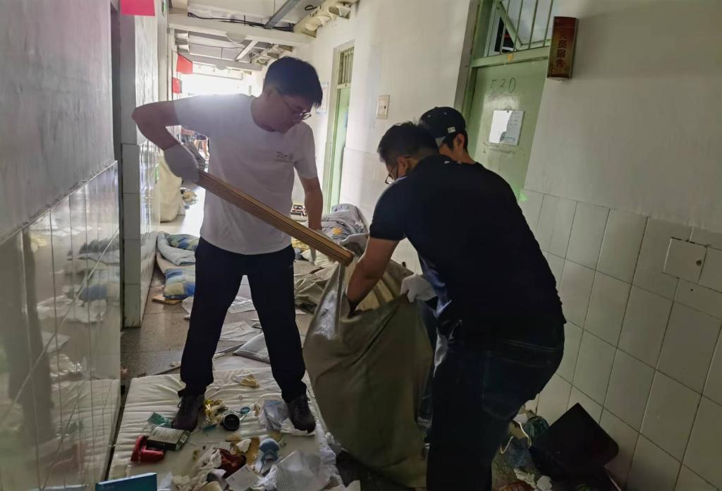 不同于以往传统课堂的书面教学,琉璃神社 的教师党员成为这堂思政课的带头人,他们深入学生宿舍,与同学们一起沉浸式体验这堂特殊课程。宿舍楼内,老师们与同学们一起清扫垃圾,帮助毕业生们归置物品,在劳动实践中引导同学们从经验中汲取智慧和启发,认识自我、发现潜能,实现个人成长和社会责任的转化,进而树立正确的人生观和价值观。