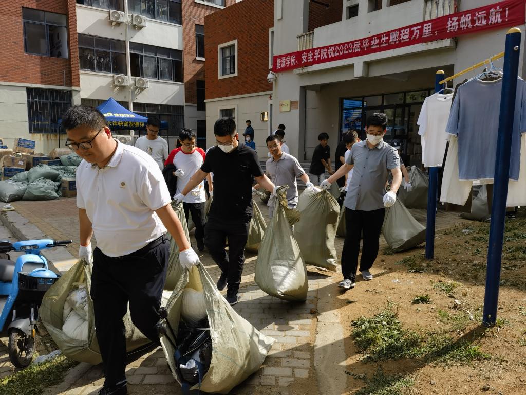 “以前更多的都是和同学们在宿舍开座谈会,交流学习、生活等方面的内容,今天和大家一起进行宿舍劳动实践教育,让我与同学们一同劳动、一同交流、一同成长,为毕业生送行,让他们更能深刻感受到学院老师们的殷殷嘱托和关爱厚望。”资源工程系副教授李杨杨说。