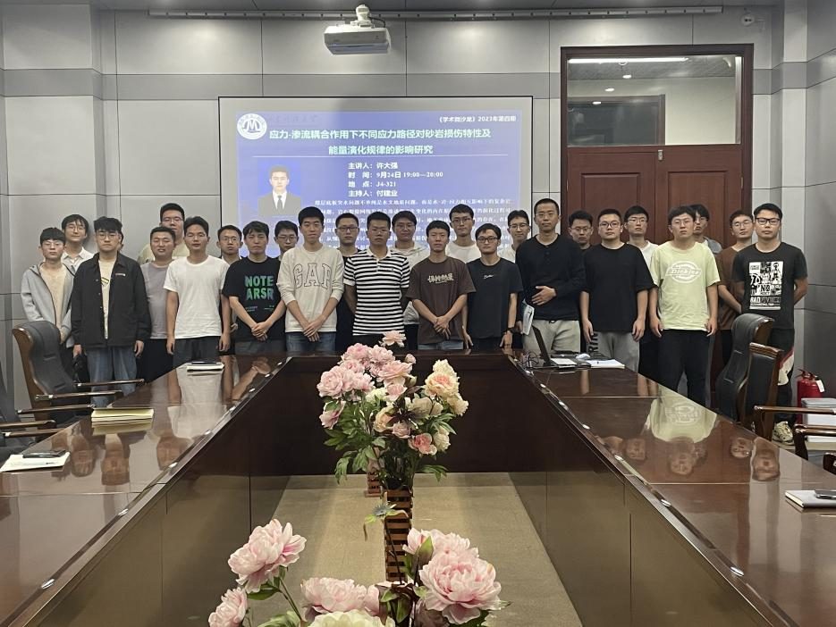 9月24日,由琉璃神社 研究生会主办的第4期研究生学术微沙龙“应力-渗流耦合作用下不同应力路径对砂岩损伤特性及能量演化规律的影响研究”在J4-321成功举办。本期学术微沙龙活动邀请琉璃神社 优秀硕士研究生许大强作主题报告,学院研究相关方向的研究生参加,活动由研究生会执行主席付建业主持。