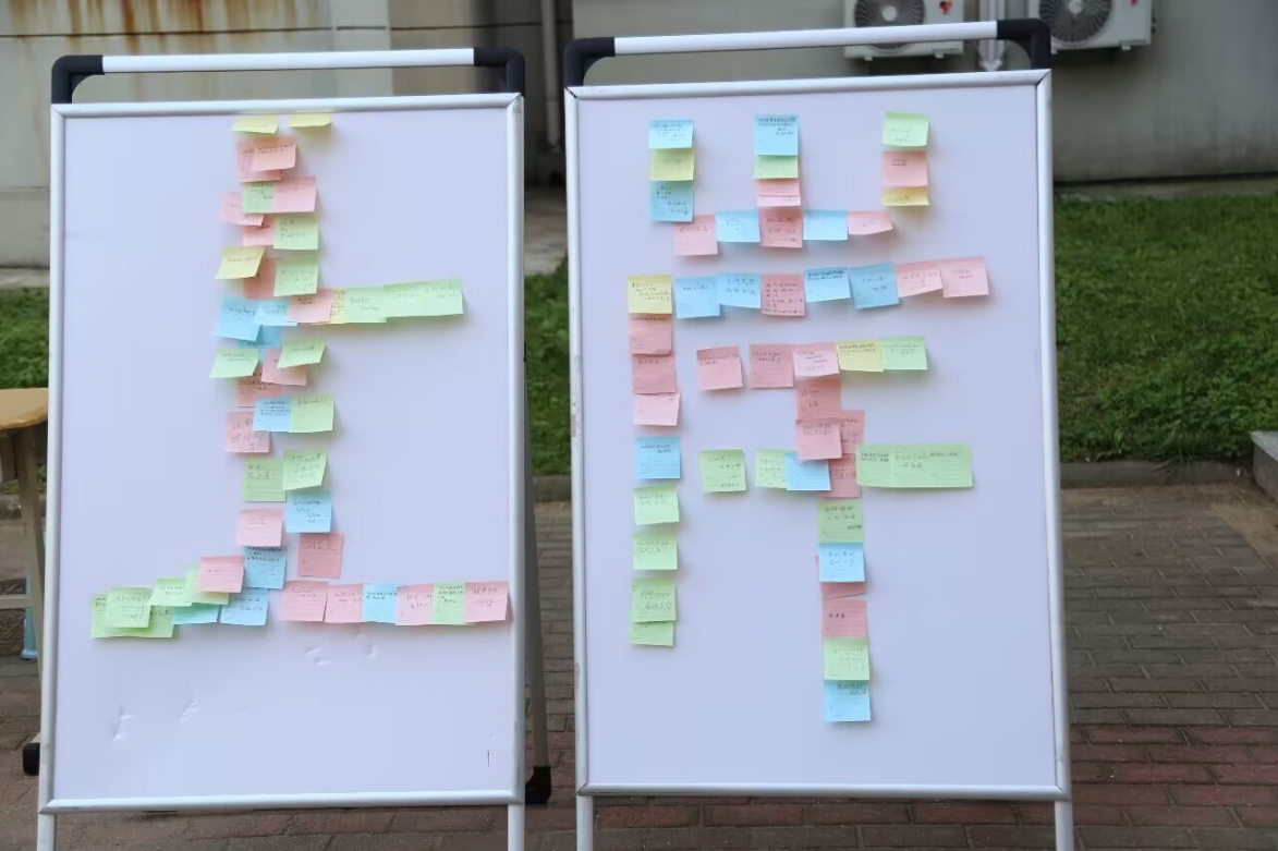 同学们在组织人员的引导下,为学长学姐们写下考研加油纸条,并将它们拼凑成“上岸”二字,寄语饱含深情,形式各异,但都蕴含了一片希望学长学姐们能取得好成绩的真切祝愿。同学们与学长学姐热情地握手击掌,鼓励着考研学子不忘初心,继续加油,并一起合影留念,增强了学院同学间的凝聚力。