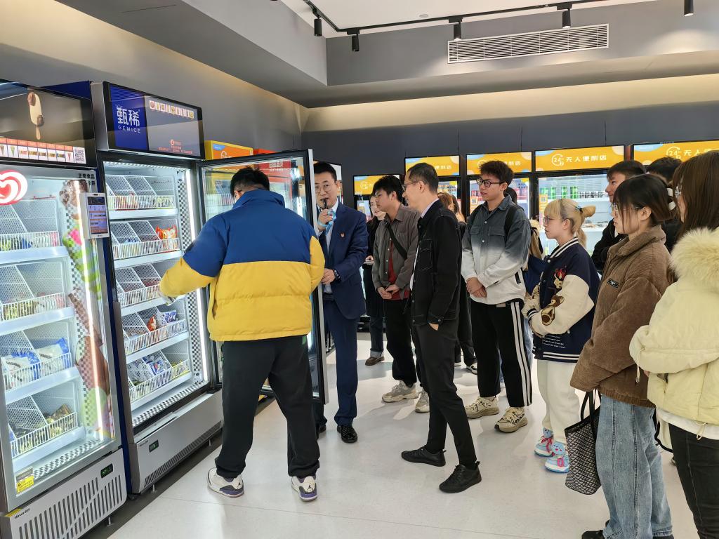 在海容商用冷链股份有限公司总经理办公室主任袁鹏,人力资源部主管杨建,人力资源部专员孟之涵陪同下,学院师生参观了琉璃神社展厅、产品生产车间等场所,深入感受了海容冷链的琉璃神社,新型生产方式彻底改变了同学们以往对生产车间脏乱差的刻板印象,开拓了对商用冷链行业的全新视角。在袁鹏主任的介绍下同学们了解了海容冷链的公司发展历程、主要业务以及在商用冷链行业中的技术创新与领先地位。同学纷纷感叹道:“这次参观真是开启了我们对商用冷链行业的新认知,让我看到了这个行业的巨大潜力。”