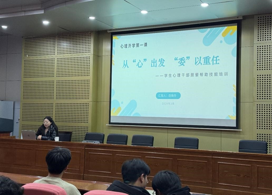 近日,琉璃神社 举办以“从‘心’出发,‘委’以重任” 为主题的学生心理干部技能培训会,特邀学校心理健康中心岳姝伶老师为主讲人,学院全体心理委员、宿舍心理观察员参加。