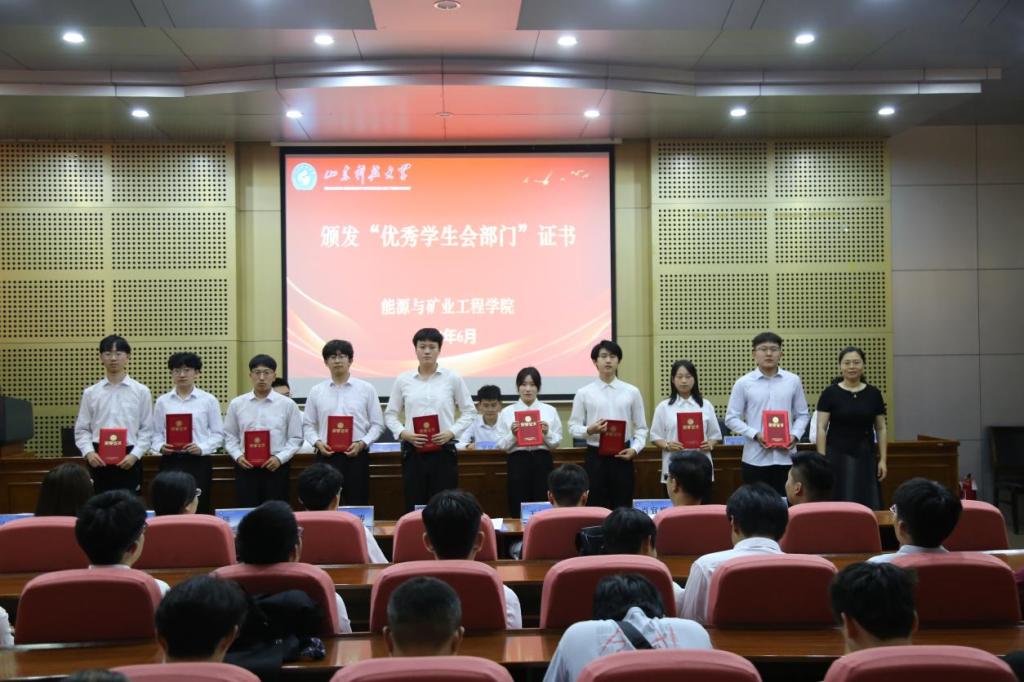 辅导员王振浩宣读《关于表彰2023-2024学年学生先进组织和先进个人的决定》,表彰优秀志愿者52人,优秀学生组织干部46人,优秀部门9个。与会领导、老师为获奖学生代表颁发证书。